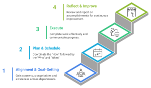 - Actively plan, schedule, and execute work while maintaining visibility across the organization